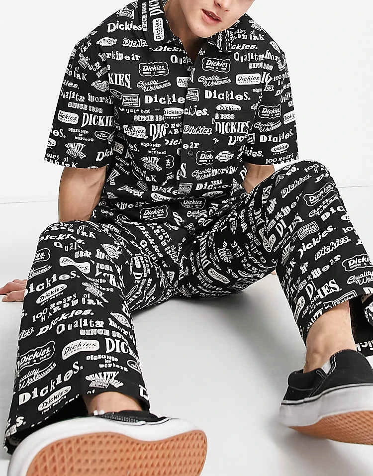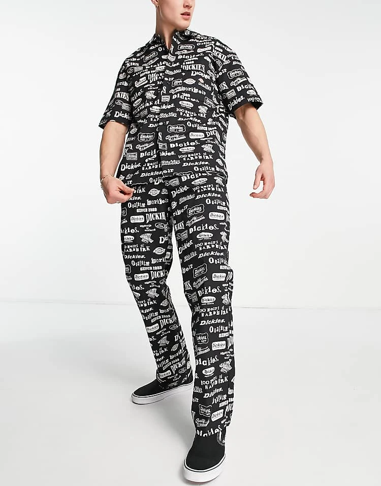 Dickies Unionville Pleated Wide Leg Work Trousers In Black For Men
