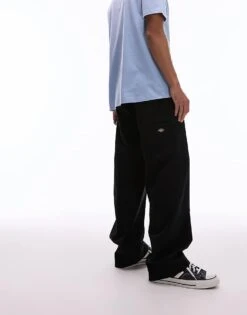 Dickies Unionville Pleated Wide Leg Work Trousers In Black For Men