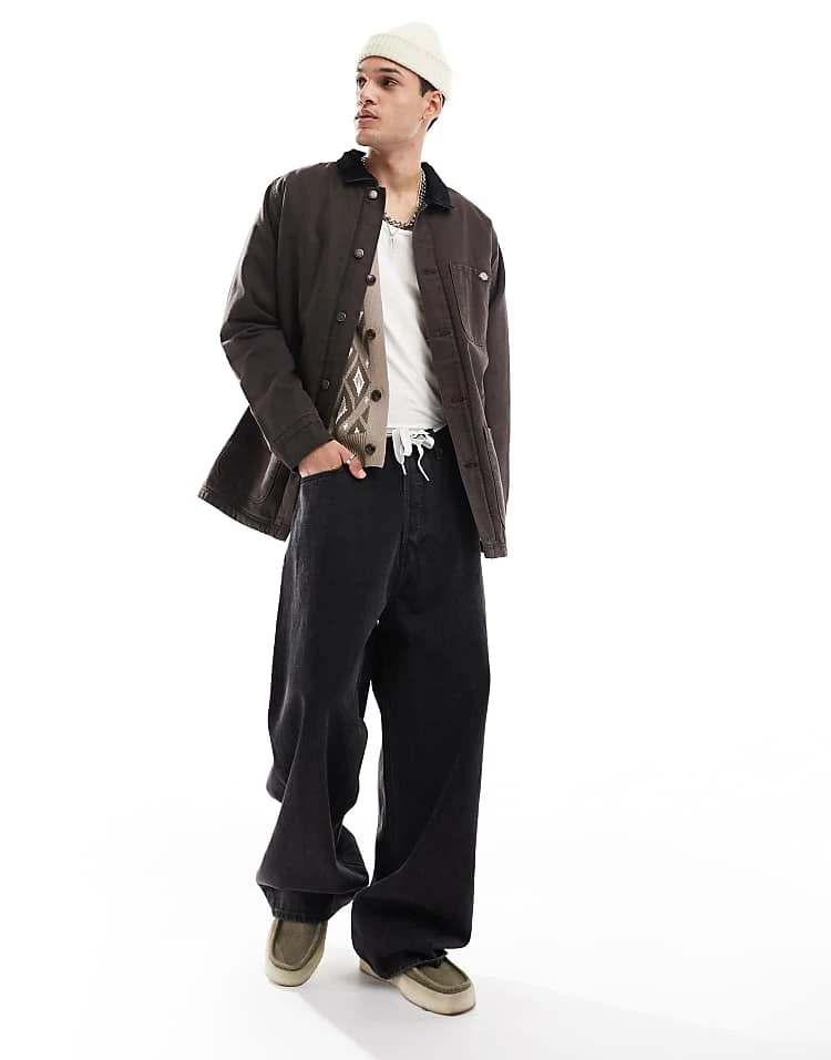 Dickies Unionville Pleated Wide Leg Work Trousers In Black For Men