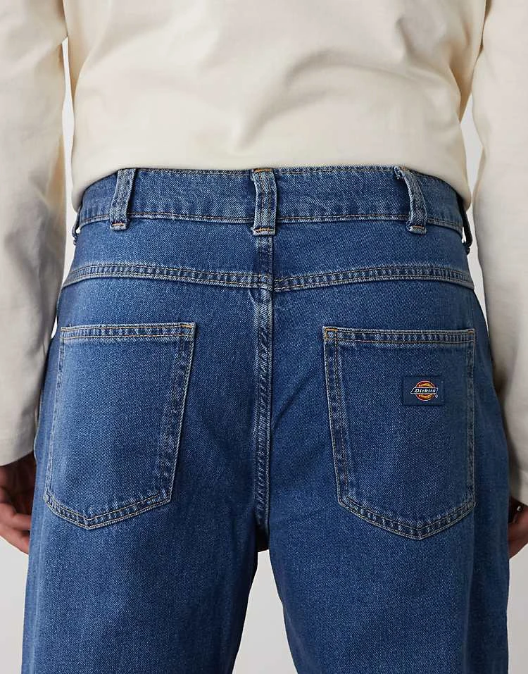 Dickies Stevensville Baggy Fit Carpenter Denim Jeans In Indigo With Yellow Fade For Men
