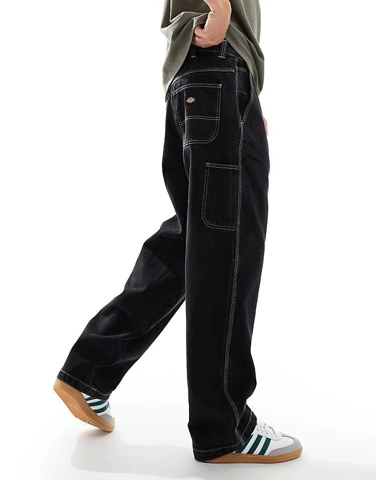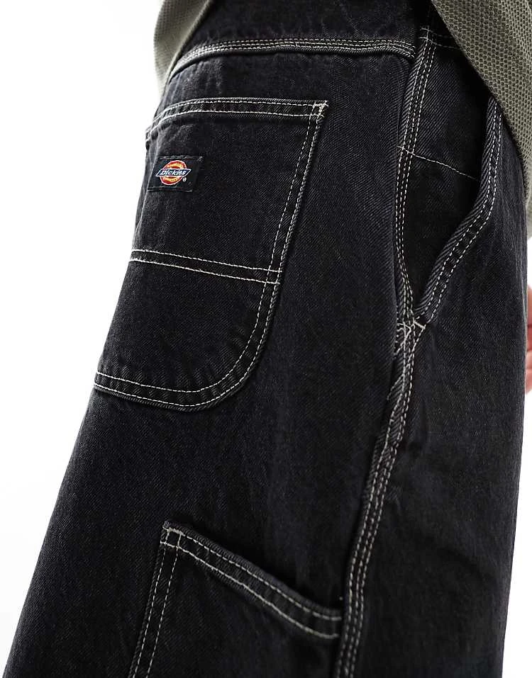 Dickies Stevensville Baggy Fit Carpenter Denim Jeans In Indigo With Yellow Fade For Men