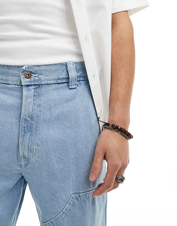 Dickies Stevensville Baggy Fit Carpenter Denim Jeans In Indigo With Yellow Fade For Men