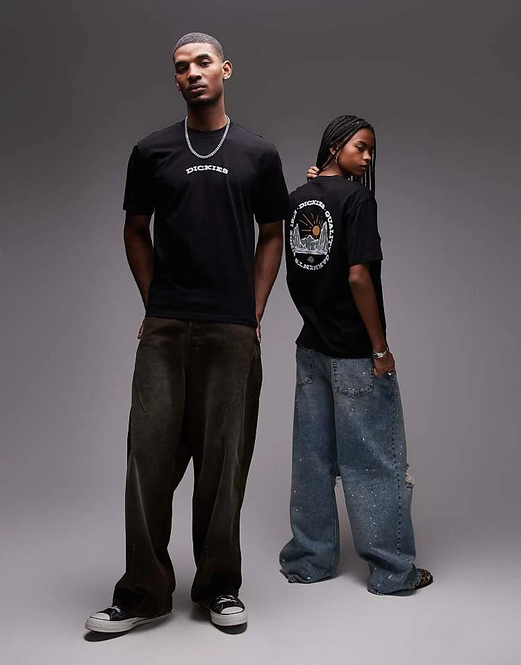 Dickies Unionville Pleated Wide Leg Work Trousers In Black For Men