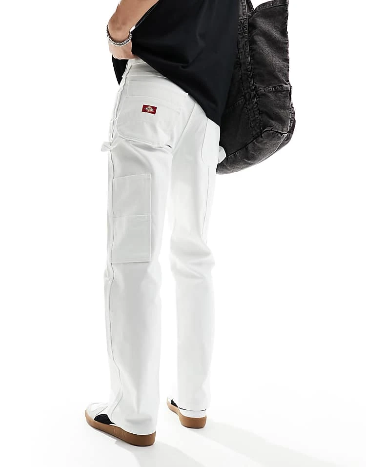 Dickies Pinstripe Carpenter Trousers In Black And Off White For Men
