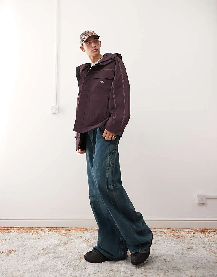 Dickies Unionville Pleated Wide Leg Work Trousers In Black For Men